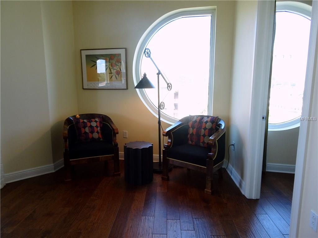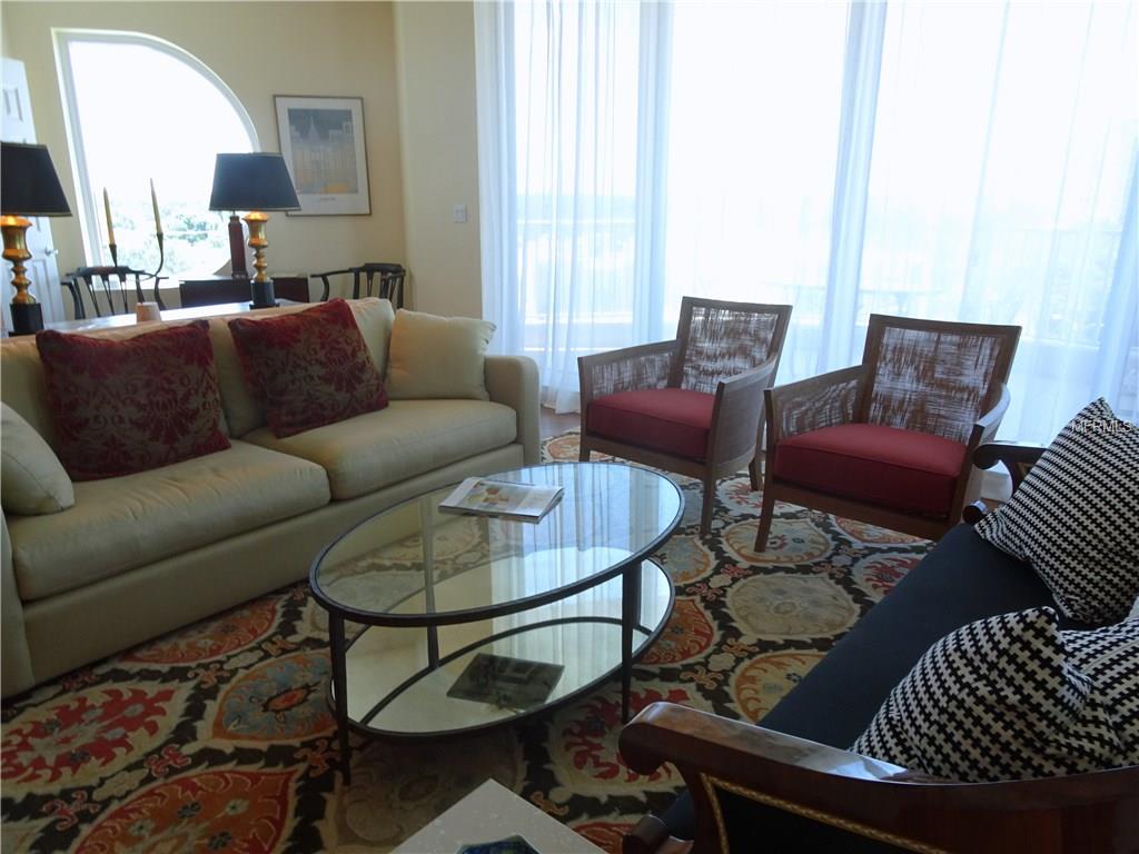 SEASONAL – Downtown 2 bed / 2 bath condo in a stunning contemporary high rise building. There is also a spacious den/office with a double pullout for an overnight guest. The panoramic floor to ceiling living room windows and large balcony, a perfect spot for your morning coffee, overlook the beautiful, wooded, historic neighborhood of Laurel Park and artist colony of Towles Court. There is another private terrace off the guest bedroom. Walking distance to an array of entertainment, shopping, restaurants and Payne Park with its 12 beautifully maintained Har-Tru tennis courts. The concierge staffed building offers swimming, jacuzzi and a state of the art workout gym. There is a gas grill and outdoor dining options. Bicycle storage is on the ground floor for easy access as well as kayak storage. The rent includes bi-weekly cleaning service, leaving you free to fully enjoy the wonderfully convenient downtown Sarasota lifestyle. Call for off-season rates and availability. AVAILABLE FOR HIGH SEASON 2021.